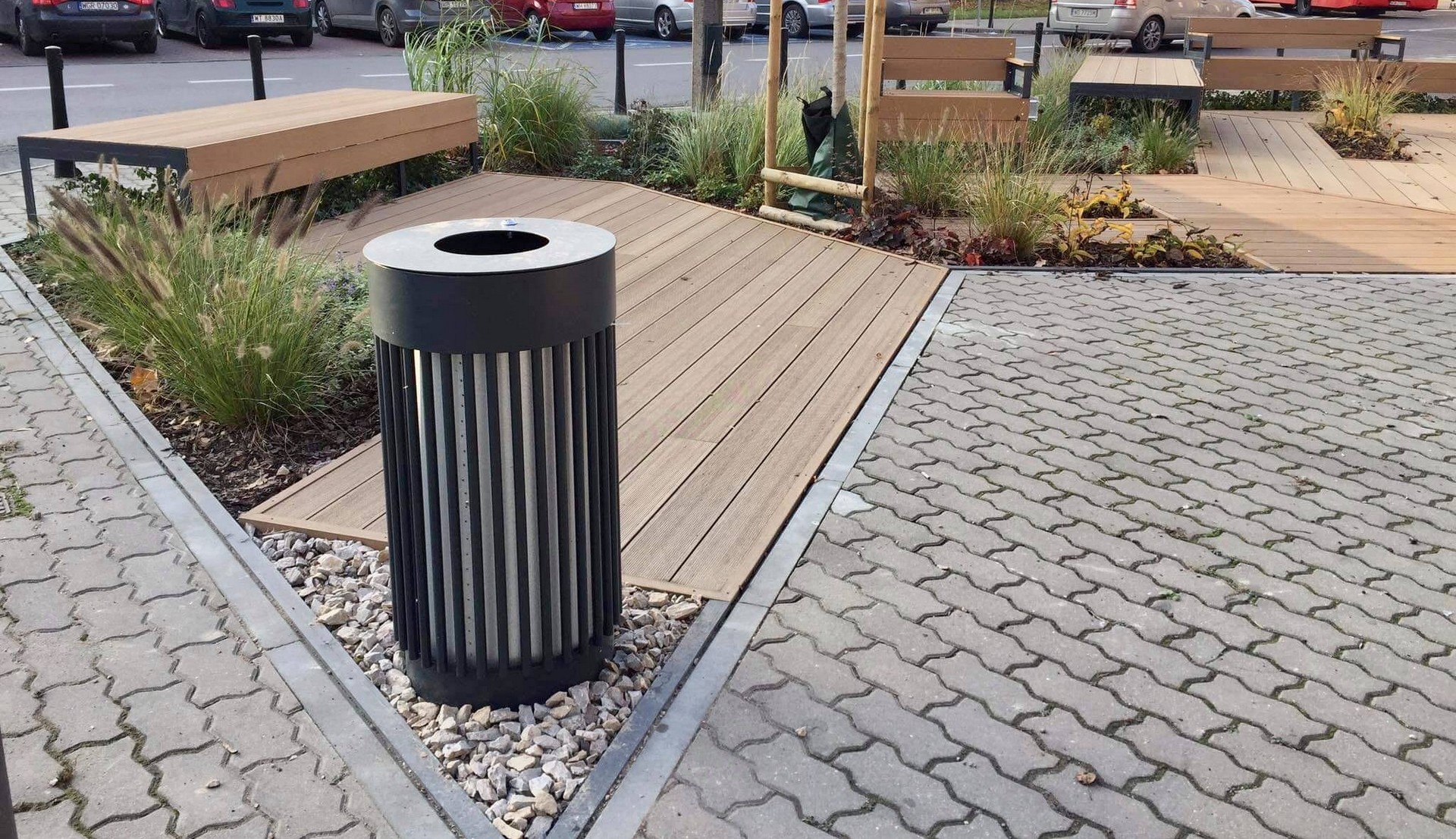 Projekt:Projekt wykonawczy oparty na koncepcji koordynacja 3D Wykonanie: Chodnik z elementów betonowychKonstrukcje ławek stalowychTarasy systemoweNasadzenia roślin