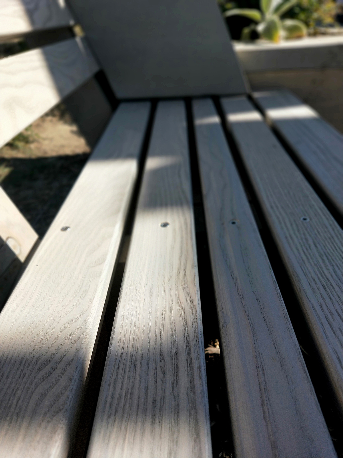Siedzisko i oparcie ławek z drewna liściastego klonowego o frubości 2 cm, dwie krawędzie fazowane.