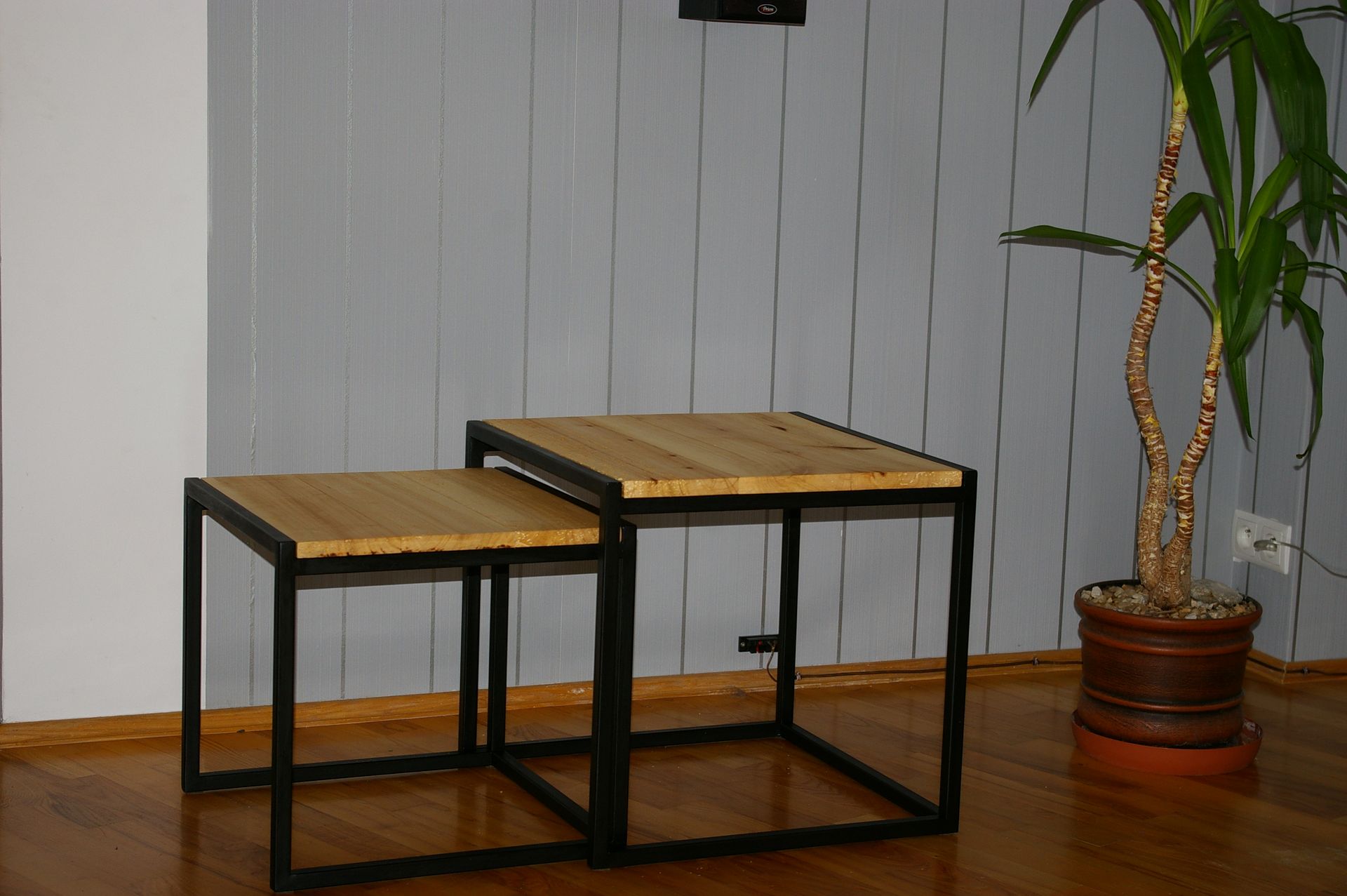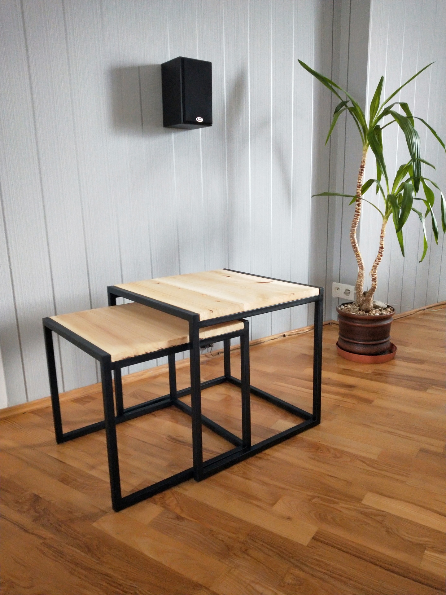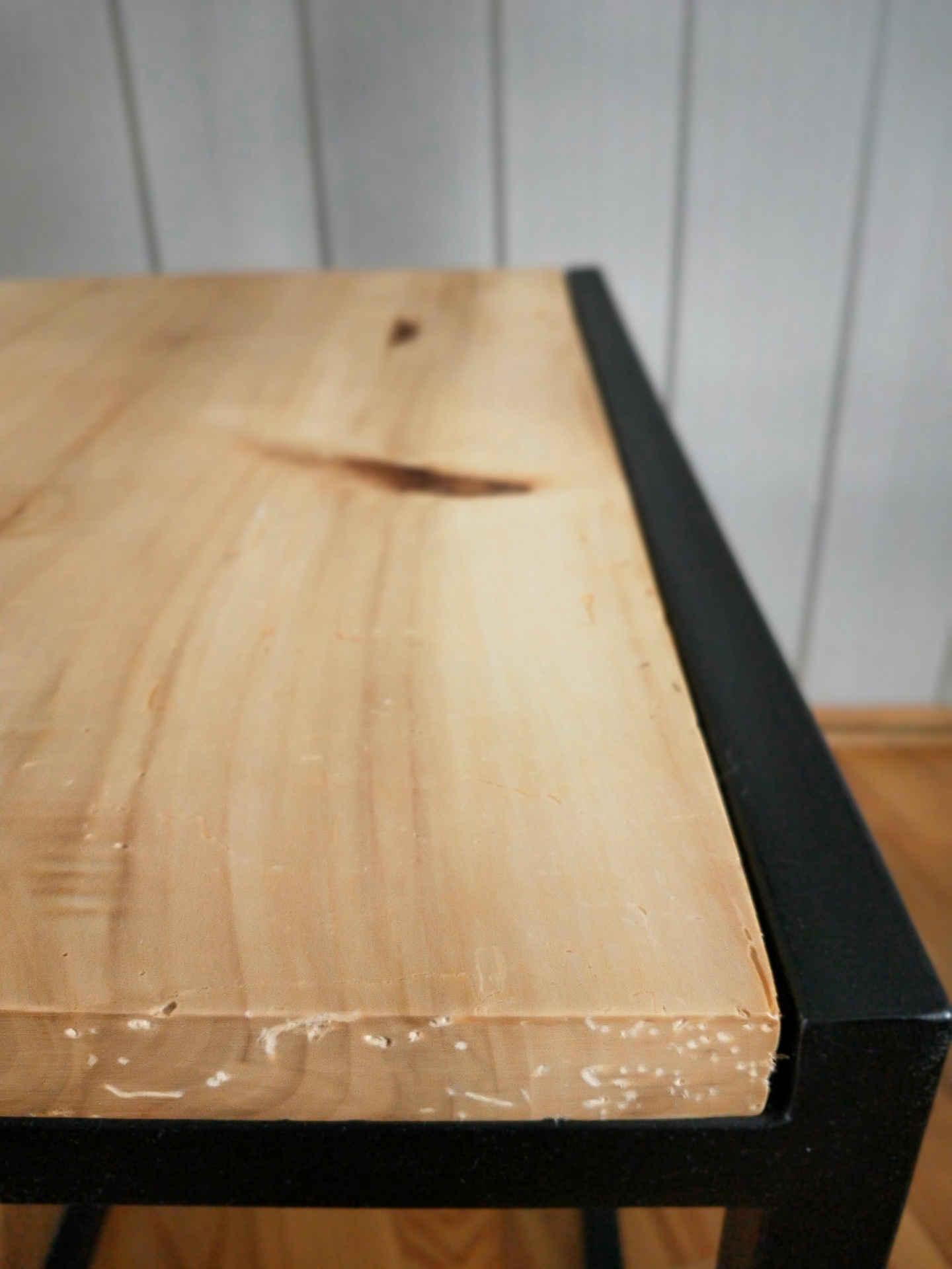 loftowy stolik powstał z połączenia odzyskanego materiału stalowego oraz starej kilkudziesięcio letniej deski olchowej. Całość stworzyła mebel który świetnie pasuje do wnętrz vintage.Drewno zabezpieczone olejem Osmo do zastosowań w kuchni.